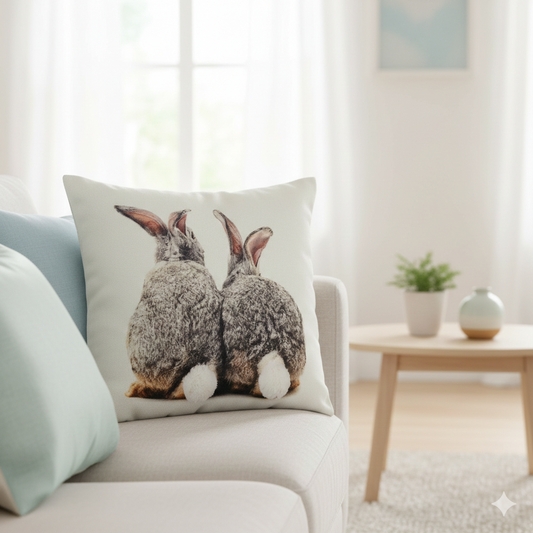 Kissen mit Hasen Print und Schwänzchen 45x45 cm | CreativHome