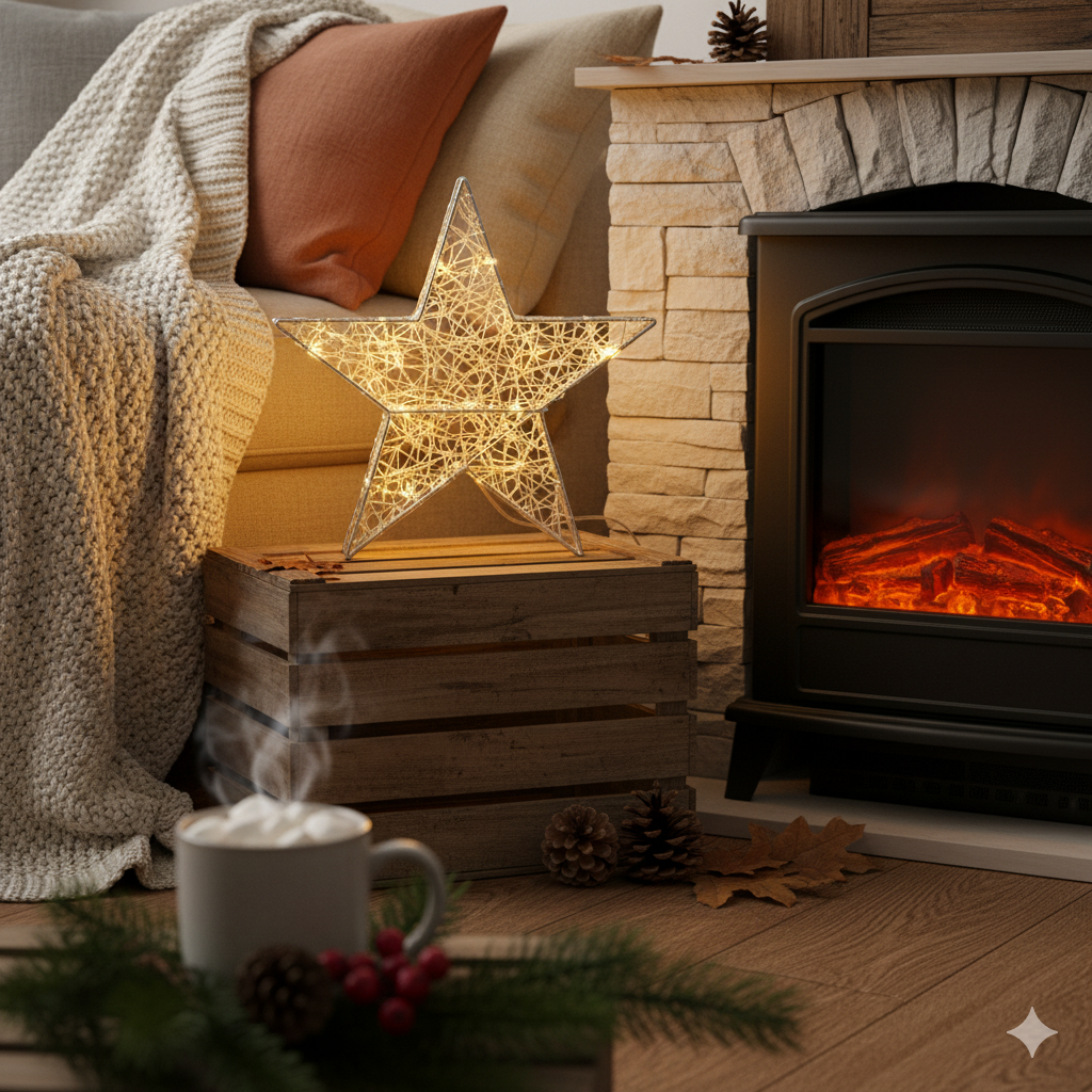 Dank integriertem Timer (6 Stunden an / 18 Stunden aus) leuchtet der Stern ganz automatisch und schafft jeden Abend aufs Neue eine behagliche Atmosphäre. Der Netzstecker sorgt dabei für zuverlässige Stromversorgung – perfekt für den Innenbereich.
